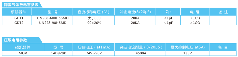 ■前级采用通流量大,断续流能力强,残压低的贴片GDT1